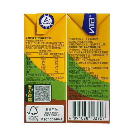 商品名称: 低糖柠檬茶250ml